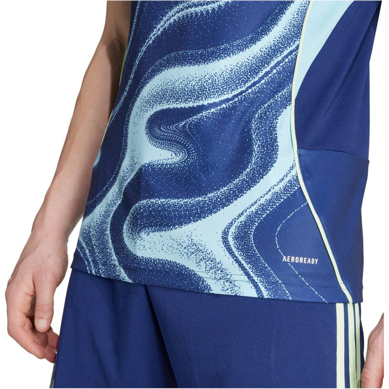 Amsterdam gibt es seit 750 Jahren und hat jahrhundertelange Erfahrung damit, über die Gezeiten zu herrschen. Die wirbelnde Grafik auf diesem adidas Ajax Amsterdam Auswärtstrikot ist eine Hommage daran, wie die Menschen von Amsterdam das Wasserstraßennetz der Stadt angesichts der ständigen ökologischen Herausforderungen kontrollieren. Unter der Oberfläche sorgen weiches Interlock-Gewebe und feuchtigkeitsregulierendes AEROREADY dafür, dass du dich immer wohl fühlst, während du deine Liebe zu deinem Fußballverein zeigst. Produktdetails: Schmal geschnitten Rundhalsausschnitt AEROREADY Aufgenähtes Ajax Amsterdam-Vereinslogo Material: 100 % Polyester (recycelt)